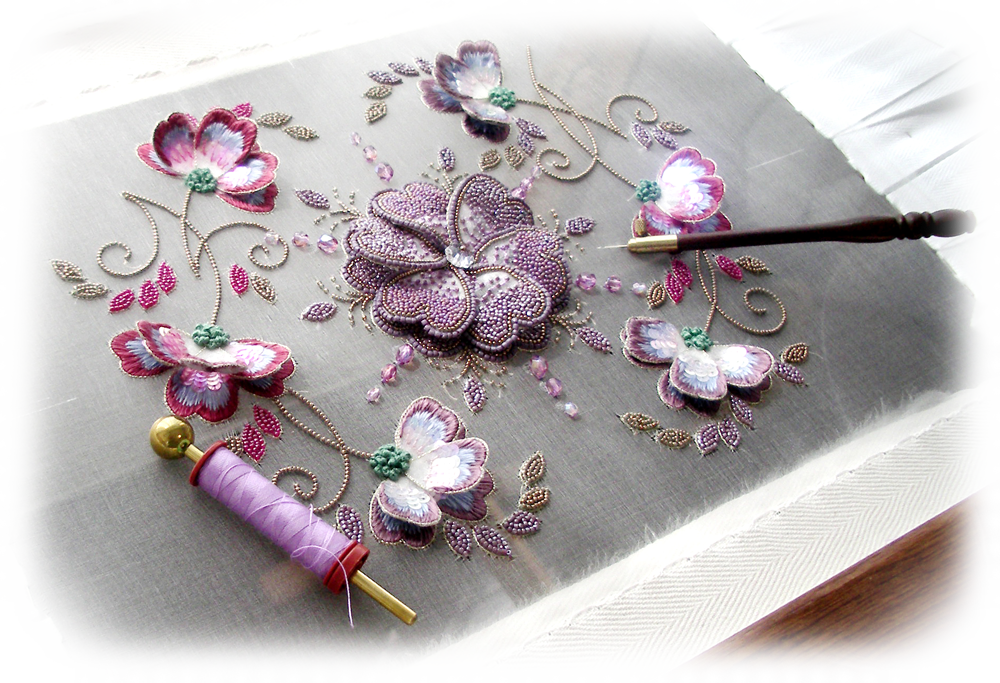 調布市 仙川。オートクチュール刺繍で作るアクセサリー教室<アンビジュー> パリのエコール・ルサージュで学んだリュネビル刺繍の技術で、アクセサリーを作ります。少人数制で、丁寧にご指導...